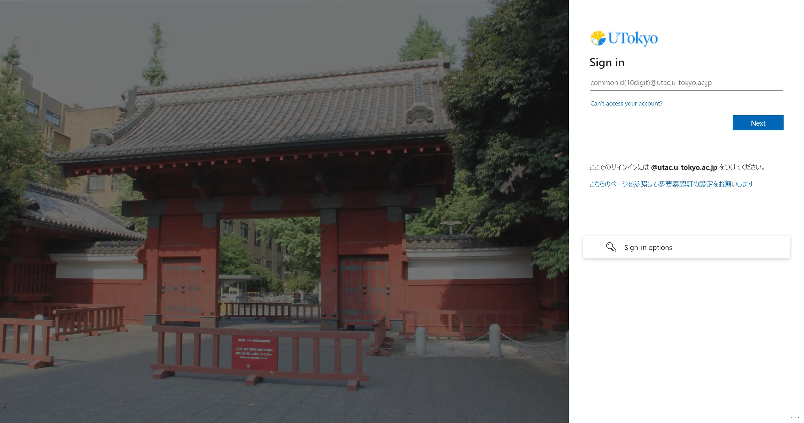 2. Unless you have already signed in, the UTokyo Account sign-in page will be displayed. Please sign in.